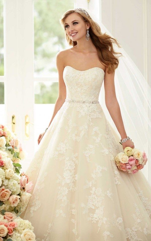 Cream and lace appliqués some together to create a classic style that so many brides will fall in love with there.