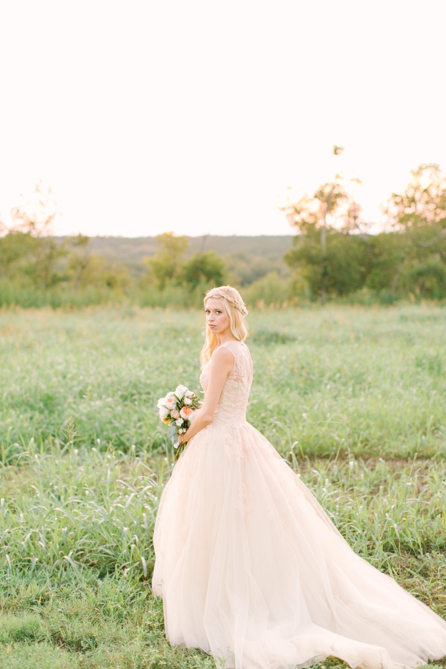 If you’re more a traditional bride, you may want to go with a more classic design. A-line skirts, a dash of sparkle and a beautiful veil can round out your timeless vision. Add some pink and white around the celebration to add even more romance and classic appeal. There’s nothing more quintessentially bridal than a tulle skirt and a flowing skirt.