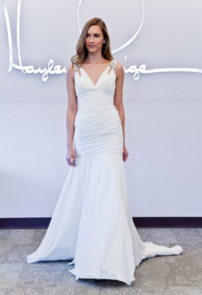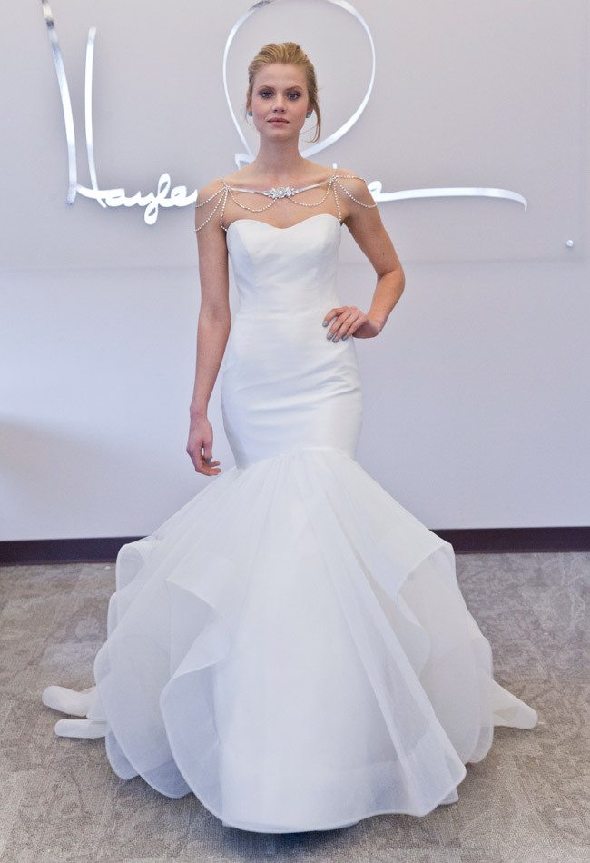 Hayley Paige’s Blush collection always has a super feminine and flirtatious appeal. And these gowns are no exception to that charming, delicate detail. Although, what we’ve noticed this time around is a bit of a grown-up, sexy and sensual feel to a lot of the gowns. For the sophisticated, yet girlishly youthful bride, these designs ‘take the cake!’