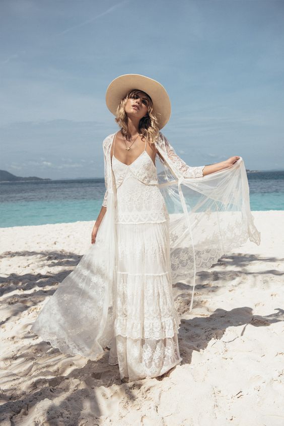 Here’s a summertime sweetheart that will show off your 70’s-loving style while still feeling very bridal.