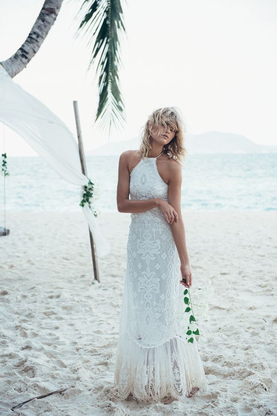 This halter beauty will effortlessly show off your toned arms and shoulders while bringing about of romance to your destination celebration.