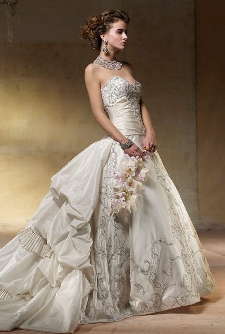 Feel a bit like Belle from Beauty and the Beast with this pick-up, rosette-filled satin gown.