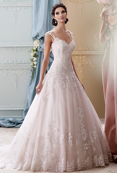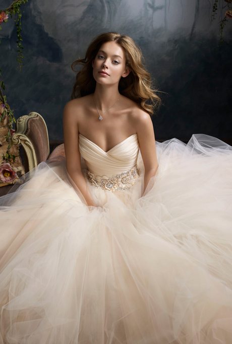Here’s a beautiful, classic princess-styled wedding with flowing skirt layers and a beaded neckline.