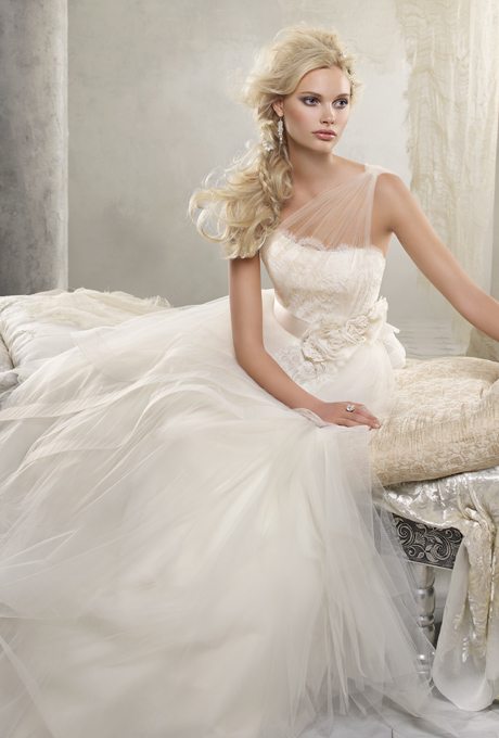 A wispier version of the classic, princess ball gown, we’re in love with this one-shoulder wraparound.