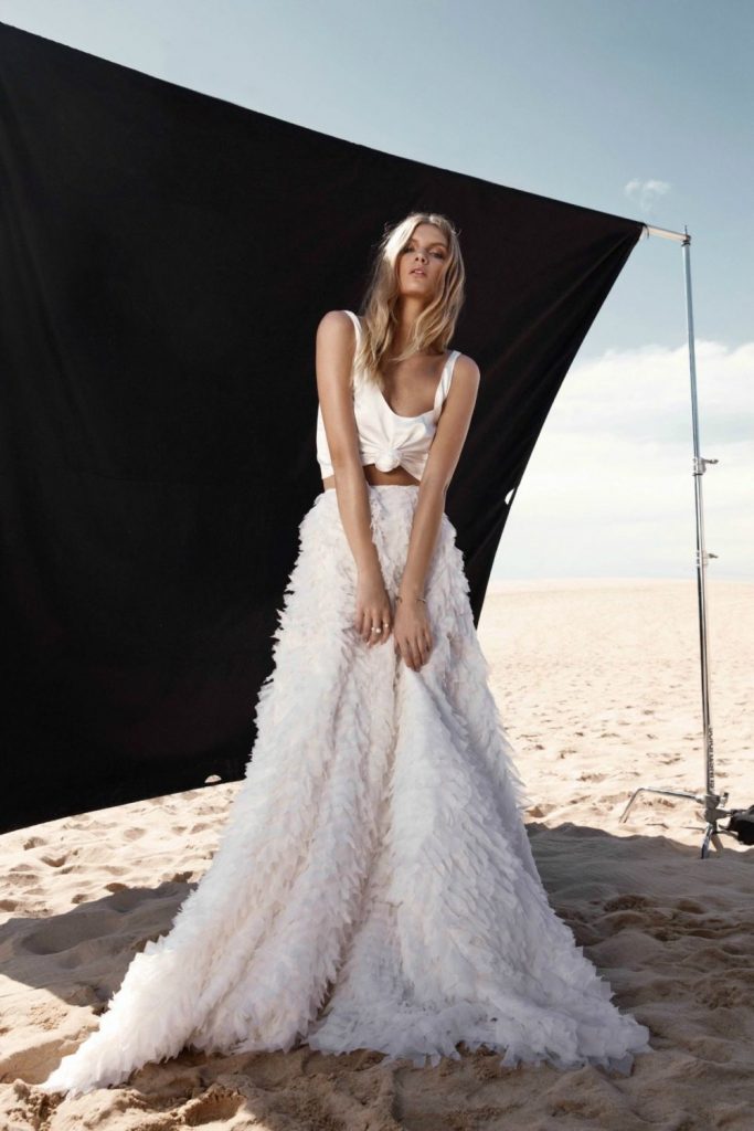 Do something even more original and walk down the aisle in two pieces – a tank and a gorgeous, textural skirt like you see here.