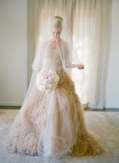 Be daring and be different … even when you’re a bride. You don’t always have to follow traditional rules when it comes to your wedding. Peek at these gorgeous, real-life brides who nixed the white and adorned themselves with blushing bridal gowns!