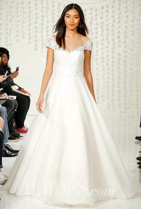 This is a more subtle version of the classic, bridal princess gown and we love the illusion neckline.