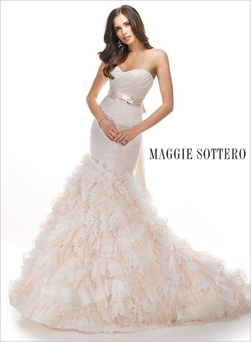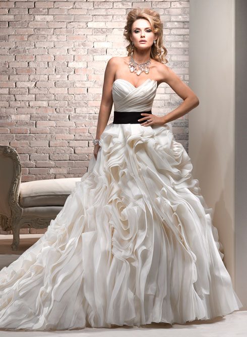 Are you a bride-to-be looking for a wedding gown that makes a statement? With a textured skirt you’ll not only have unique interest and artistic appeal, but drama as you walk down the aisle. Ruffles, pickups and patterns will help to create incredible pictures and help you feel like the beautiful, blushing bride you’re meant to be. Take a peek at our roundup of gorgeous, WOW! wedding gowns with textured skirts and grab some inspiration.