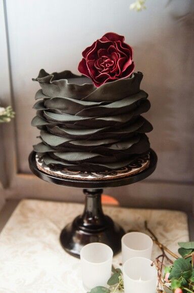 Even if its dipped in black to match your edgy theme, a ruffled cake has a bout of elegance and femininity attached.
