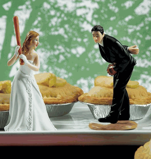 Bride Ready To Hit A Home Run with Groom Pitching Cake Topper Set