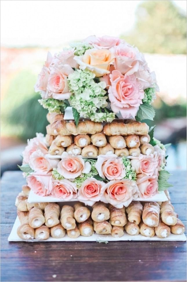 Homemade cannolis or similar pastries could create a scene at the party as well. We are loving the layers of florals that highlight this design as well, creating quite the right amount of inspiration for your own big day.