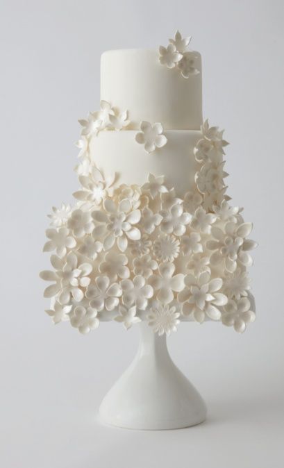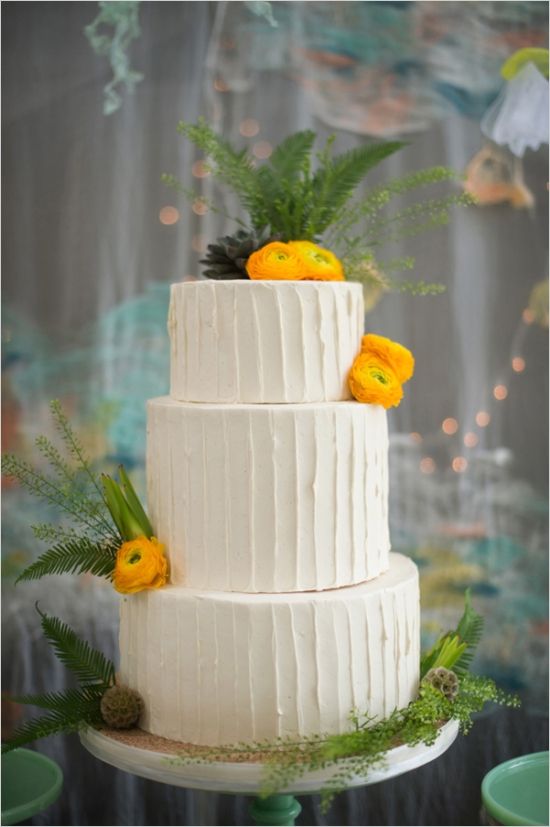 When you see a cake icing that is unbelievably smooth, it is most likely fondant. Fondant icing is a very smooth, firm sugar icing, made from a play dough-like sugar paste that is usually kneaded until silky and pliable, rolled out, and draped over the cake tiers. It remains fresh for days if refrigerated, can be colored any hue, and can be shaped into figures, flowers, and other shapes. Fondant icing can be really sweet and have a gummy texture that guests likely will not enjoy, but it is incredibly beautiful!