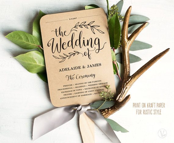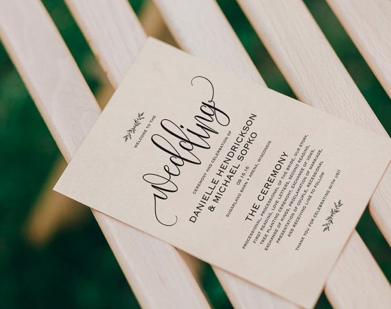 Printable Wedding Invitations, Programs and Signs. This store has over 100 DIY wedding programs by itself, along of hundreds of others across all printables and wedding invitation categories. It is one of the largest selections we’ve seen on Etsy and the quality and diversity of creative is huge. VineWedding on Etsy.