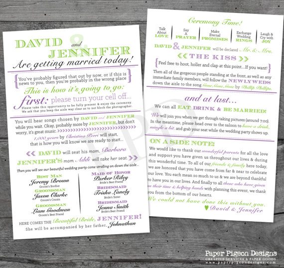 - Steal this funny wedding program for your own wedding day! From Off Beat Bride.