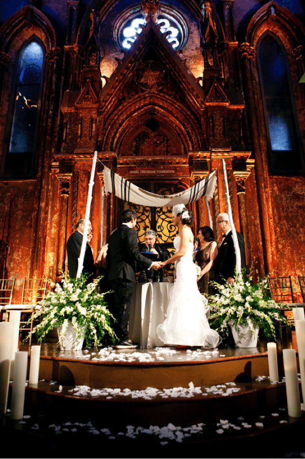 Whether your wedding is at a destination location or you are a travel maven, this is a fun way to stylize your chuppah. Luxurious gold fabric to signify the Maldives or floating clocks to represent London’s Big Ben are perfect ways to show your love for travel regardless of where you say “I do.”
