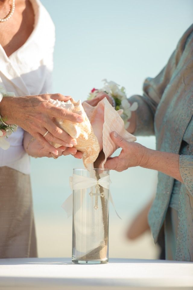 Josephine from Parker, AZ says “We didn’t want the unity candle blowing out at our garden wedding and the sand ceremony worked great. It was really beautiful and I’ve never heard so many cameras going off at once as when we were filling that vase!”