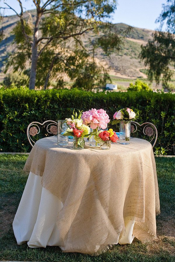 From the bouquet to the ceremony chairs, there are plenty of ways to round out the day and pay attention to every corner of the celebration. And that’s what we’re here for! Burlap is the go-to fabric when planning a country-flavored, natural event. You can’t forget this signature piece of the decor when deciding on the specifics and fine points of the party.