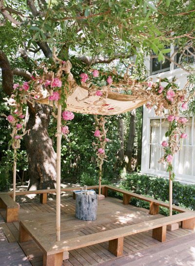 Floral Ceremony ChuppahFeminine and casual, we love how this chuppah mixes bridal-worthy flair with a backyard appeal.