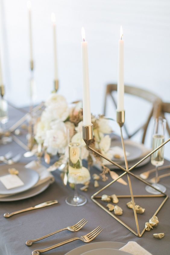 We love how the golden tones set off the subtle romance of the greys – no matter what shade you decide to go with.