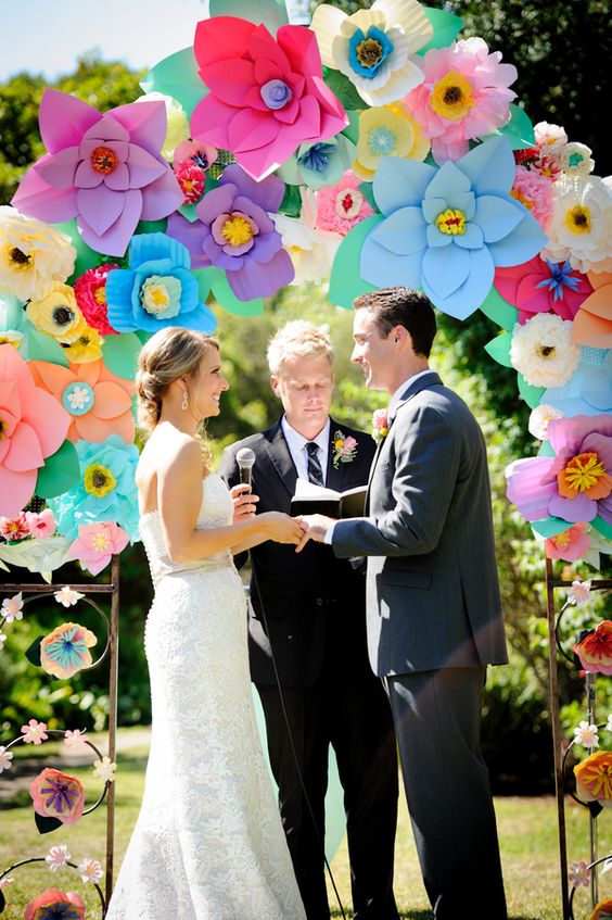 A beautiful, paper floral backdrop can set the tone for quite a gorgeous ceremony, don’t you think?