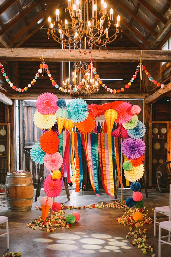 And here’s another gorgeous way to decorate the ceremony and set the tone for some fun, colorful celebrations.