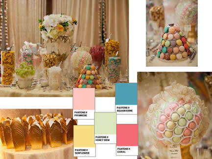 Thinking about warm tones, but in the same time really playful? Well, think of blending gold, with orange, turquoise and pink! These will definitely bring an interesting air to your wedding day or wedding reception.