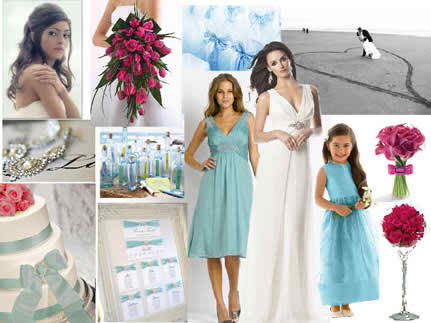 For instance, it would really be a great idea to design the bridesmaid and flower girls dresses in turquoise as to match the freshness of your wedding, which can have the marine theme as main.