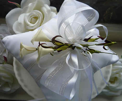 For a rustic wedding you could purchase a pillow made of canvas bag and accessorised with fine natural and dried flowers. For an autumnal wedding, the best option would be a cushion filled with copper-coloured leaves. Whereas, if you choose to accentuate a marine theme a cushion accessorized with shells and starfish may be the appropriate ring pillow.