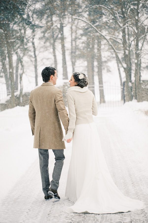 Want a memorable getaway? Hand out mini bells, and ask your guests to ring you on your way as the two of you ride off in a horse-drawn sleigh decked out with silver bells and Christmas foliage.