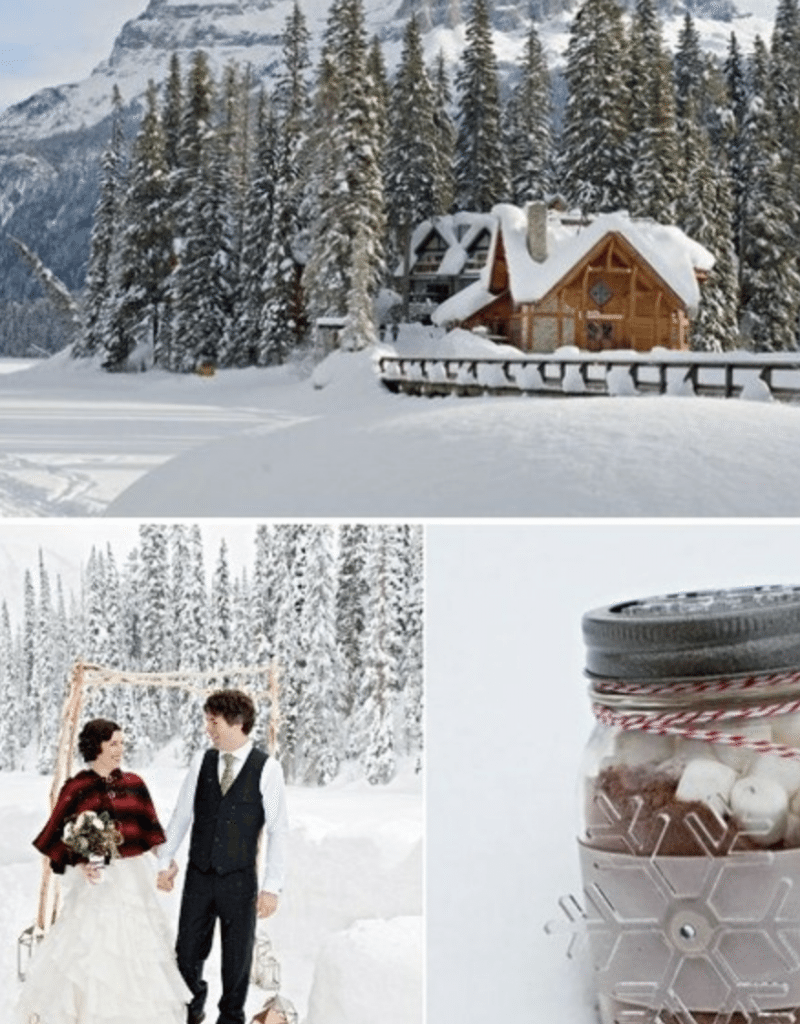 To keep floral costs to a minimum, use flowers that are already available during the winter months. Popular choices include poinsettias, roses, amaryllis, and lilies. Evergreens are tried and true for “sprucing” up large areas, while holly branches and other berried plants make merry floral accents. A cozy cottage or bed-and-breakfast makes a perfect location for your wintry theme. Picture your guests warming themselves in front of the fireplace during cocktail hour, sipping hot chocolate or wassail. Imagine them overlooking a frozen pond, or catching a glimpse of a deer drinking from the pond just outside the window … or a family of rabbits scurrying over fresh snow.