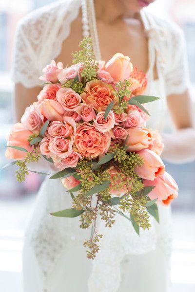 There’s just so much personality in all kinds of coral flower choices, from daisies to garden roses.