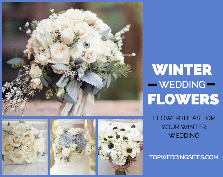 White weddings have remained popular in winter for obvious reasons, but an all-white color palette doesn’t need to be stark white. Go for the soft, “antique” white effect using cream, ivory and pale blush flowers. Or opt for elegant silver and white arrangements, another popular flower option for winter brides. Silver leaves, sequins and tendrils of silver ribbon paired with delicate, graceful snowdrops make glamorous, gorgeous displays.