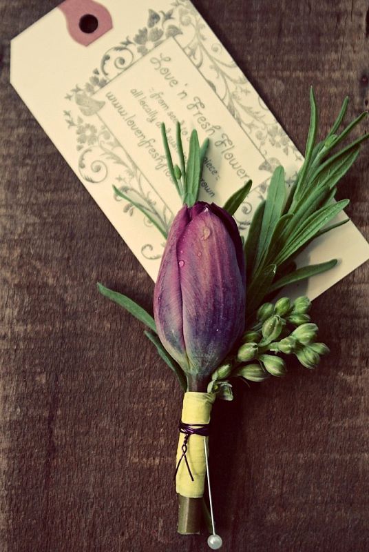 A simple, purple tulip can be the best way to top off your groom’s day of ensemble.