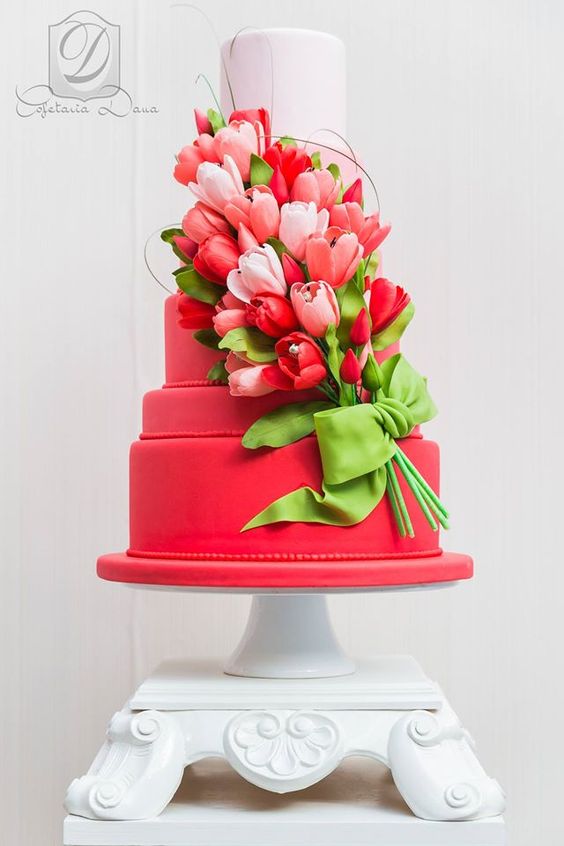 Gather those tulips and have them pop right off your springtime-styled wedding cake!