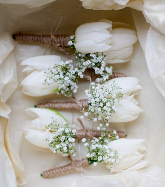 Ivory tulip boutonnieres are perfect for traditional-loving brides.