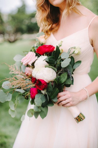 Lush and full and still very much a winter bouquet, the red roses don’t get lost or overwhelm in the design.