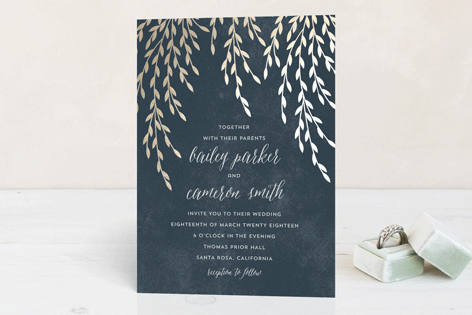 Here’s another design made with real foil and some beautiful foliage making for a clean and breezy look.