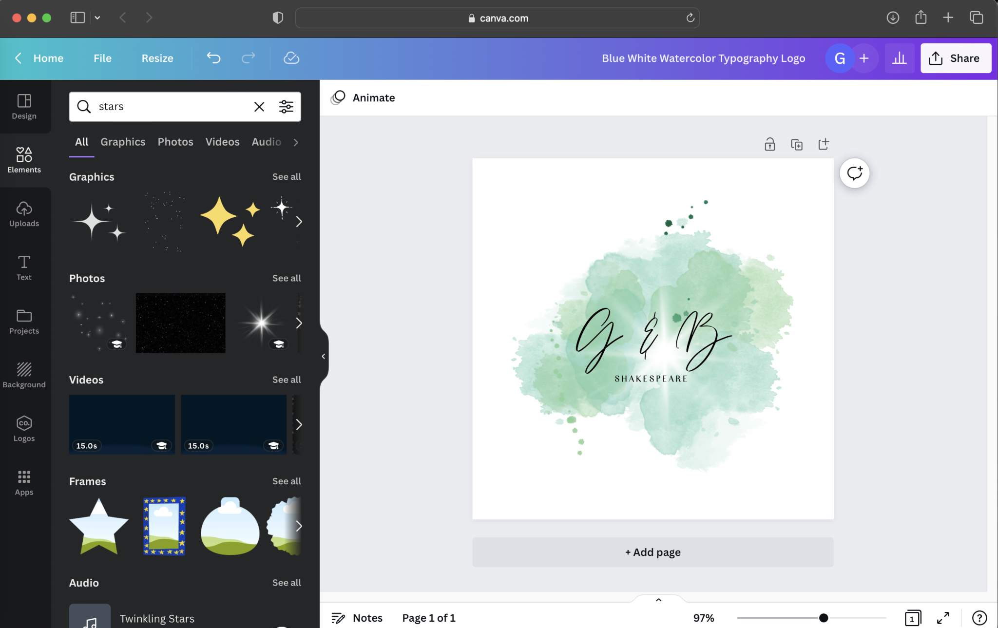 Add in pieces, such as the star you see above, to put a unique stamp on your logo.