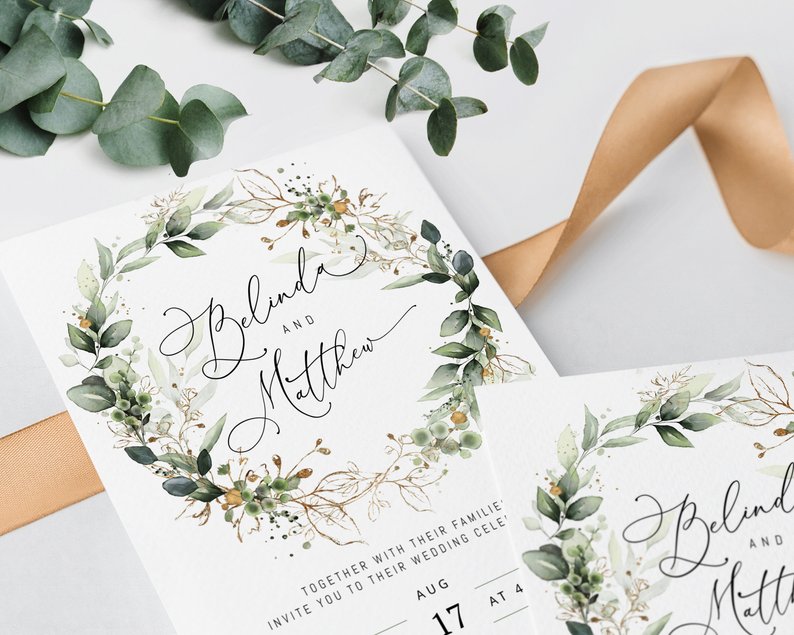 This flat, marbled invitation from Vistaprint can be created with or without gold foil. It’s right on trend with the current modern flair that’s being upheld highly throughout the wedding world as well. It also comes in a variety of colors such as lavender, gold, and blush.