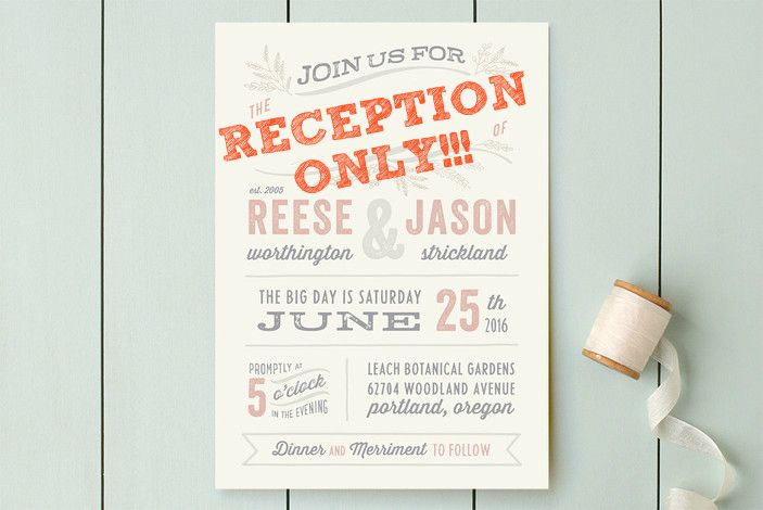 It would be terrific if you could send these out after the wedding takes place, but if you’re getting married in 3 – 5 weeks you may not be giving your guests enough notice. Typically we suggest sending reception invitations at least 6 weeks before the reception. If sending before the wedding takes place then be very clear with the wording: