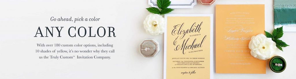 Basic Invite is truly a place of customization. To understand the term “customization,” each invite has a possibility of being transformed from its original feature using 180 different colors. So, yes, there’s a shade out there that will match the tones you’ve chosen for your wedding. This spot has a really large selection of wedding invitations and, within it, a true array of designs to match any and all couple styles.