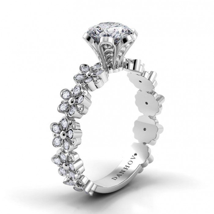 One of the hottest trends this year is floral detail on your engagement ring. From flowers to vines, these designs add a unique and romantic twist. Your bride will absolutely love this ultra-chic and ultra-feminine design.