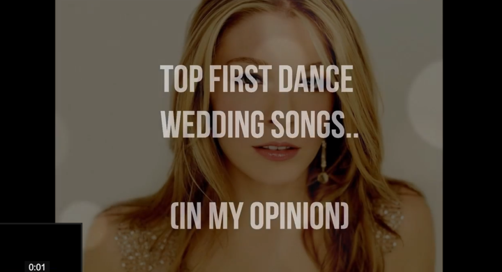 Whether your taste is traditional, trendy or in between, we can all agree that the first dance is the most important song to get right. With that goal in mind we continue to search the net for different opinions of ultimate first dance songs. Watch this great video on youtube that we think has a great list of first dance wedding songs to suit every style.