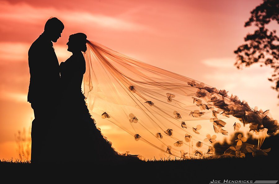 Grab a few minutes outside while the sun goes down and have your photographs capture something like this. It’s romantic, it’ll show the lines of your dress, and showcase whatever veil you’ve chosen to go with. Imagine this beauty on the walls of your home one day.