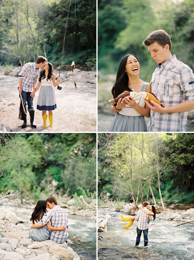 Instead of dropping by a photographer’s studio, invite her to a location that reflects you and your fiancé. Think outside the box with your setting. Do you have a pastime you both love? Turn it into a photo shoot!