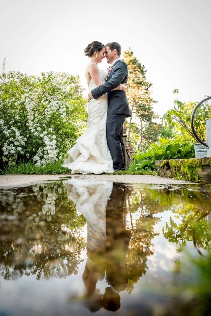 A body of water (or even a puddle) is all you need to make this happen. It’s a really romantic way to capture the bride and groom at sundown, but it’s also a fun way to show off the bridal party on the pier as well. Still waters make this an easy, nontraditional portrait to cherish.