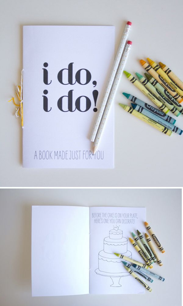 Clipboards filled with crayons and personalized coloring pages will have the little ones busy and creating memories for the happy couple to have for years to come!