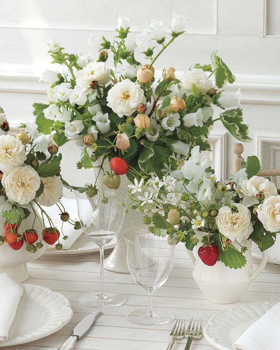 Your centerpieces could use a bout of rich, strawberry and raspberry-colored petals for a bit of bold romance.
