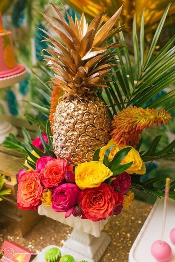 Dress your summertime wedding in a tropical, funky style. Add some pineapple pieces into your wedding reception or ceremony decor!