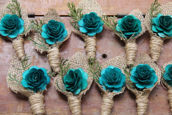 Even your groomsmen’s boutonnieres can be inspired by the color of the celebration.